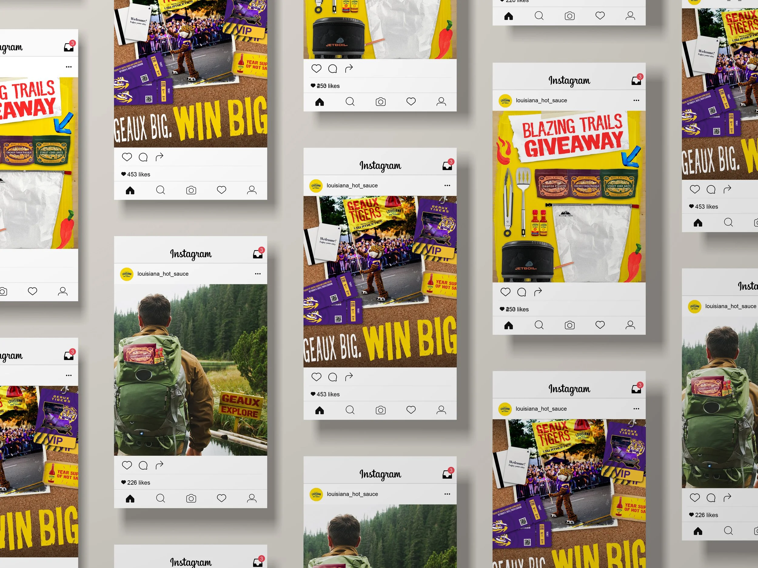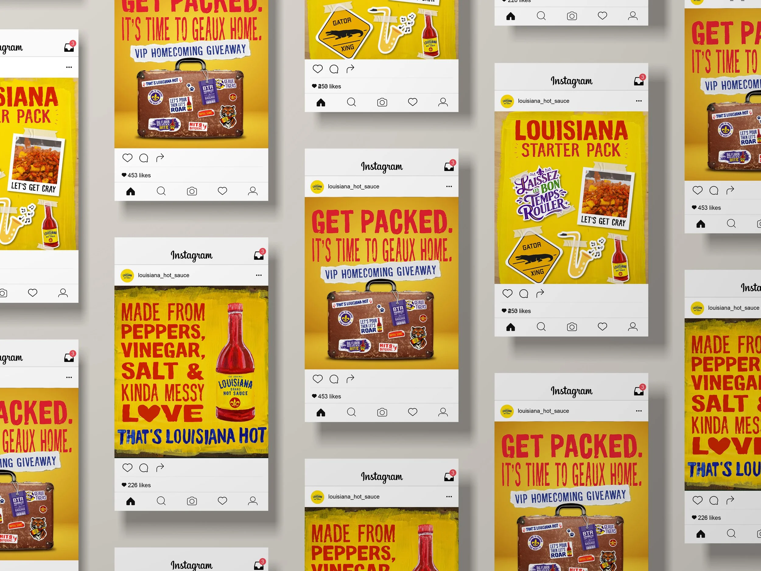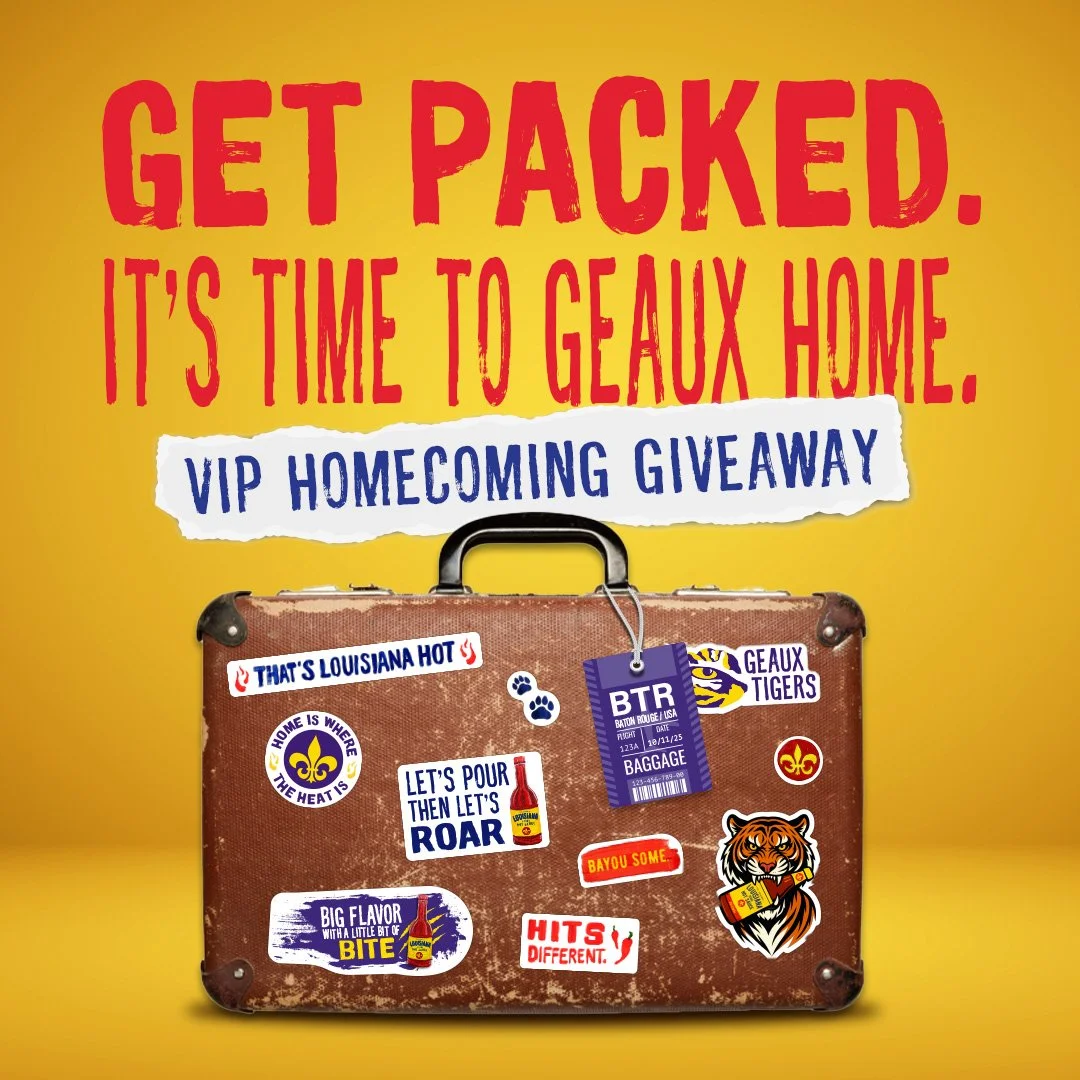 Some of my favorite graphics featured below include dark posts, unique one-offs, and partnerships with Louisiana State University and Bowl & Kettle, all of these encompassing adventurous, bright, hot energy of Louisiana Hot Sauce.